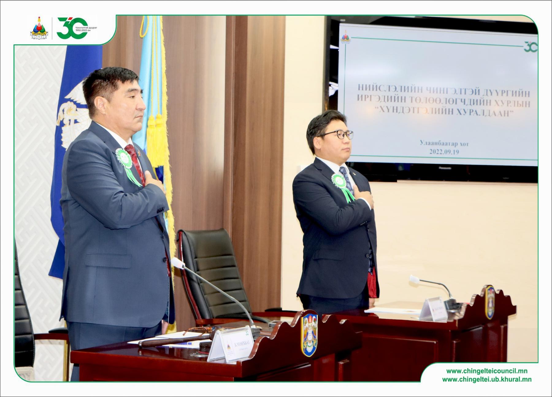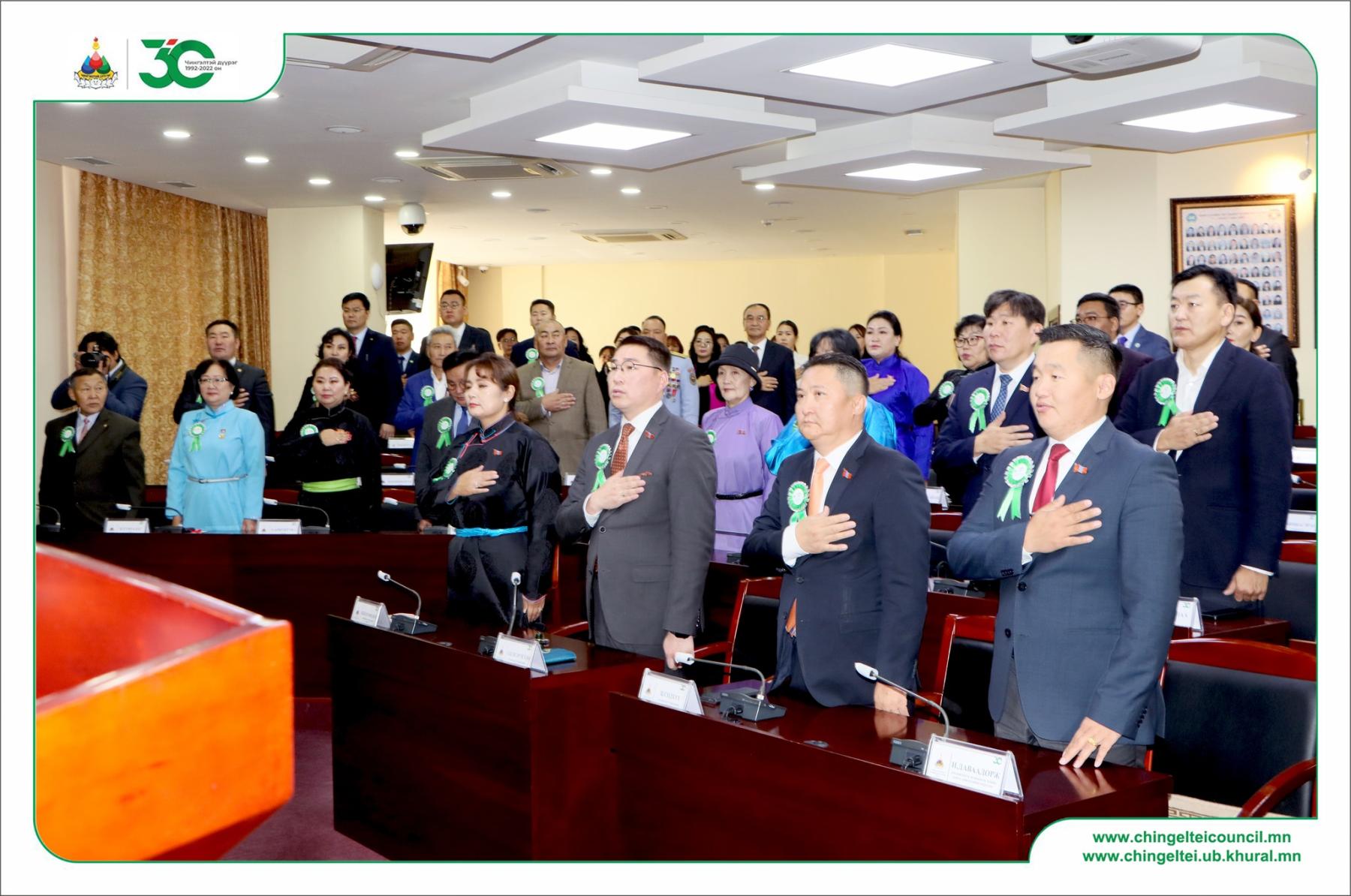 Нийслэлийн Чингэлтэй дүүргийн 30 жилийн ойд зориулсан иргэдийн Төлөөлөгчдийн Хурлын “Хүндэтгэлийн хуралдаан” өнөөдөр /2022.09.19/ Нийслэлийн Засаг даргын Тамгын газрын “Хангарди” ордонд хуралдлаа.