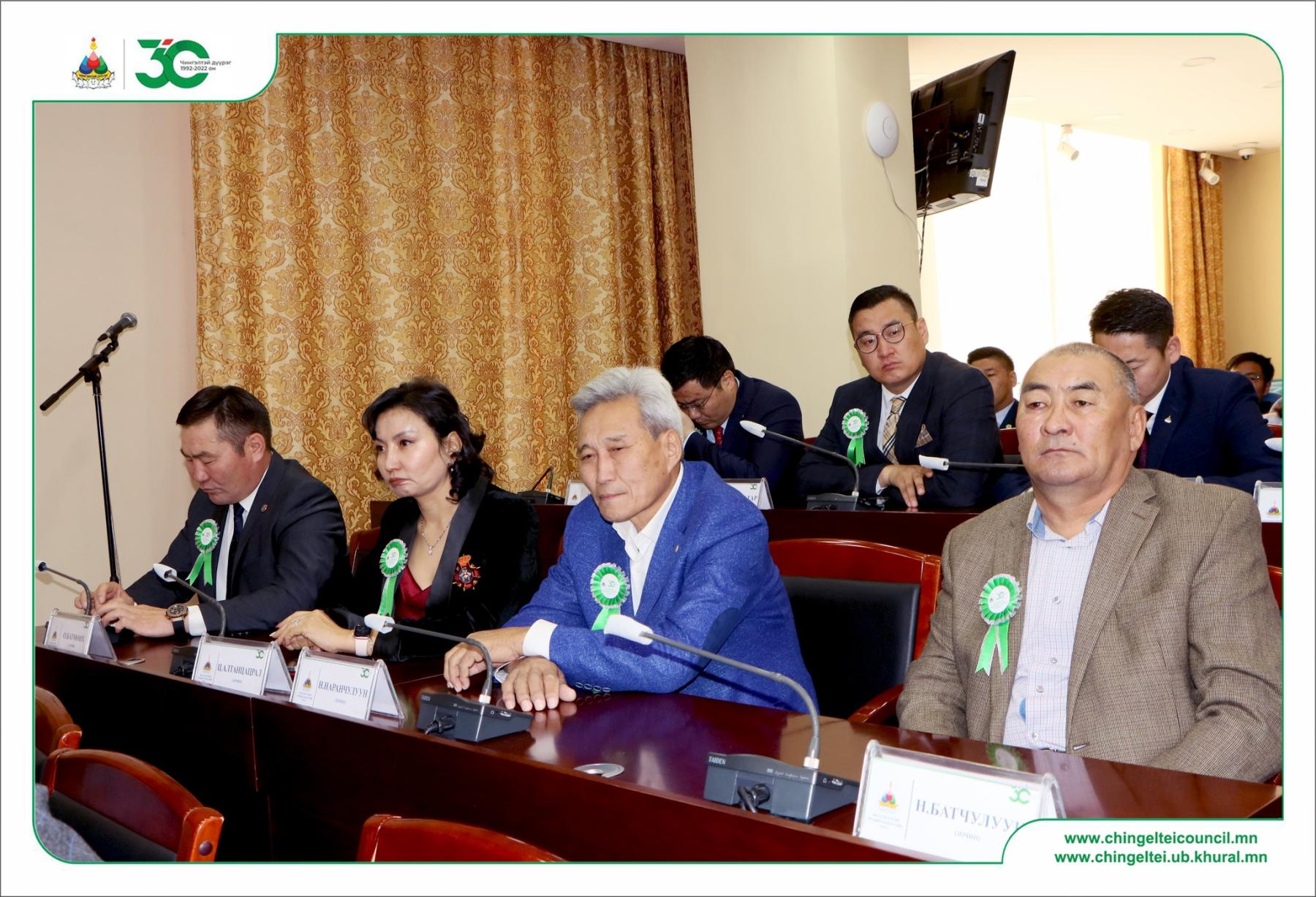 Хуралдаанд Чингэлтэй дүүргийн иргэдийн Төлөөлөгчдийн Хурлын дарга Б.Мөнхбат, Чингэлтэй дүүргийн Засаг дарга Н.Батсүмбэрэл, ИТХ-ын Төлөөлөгчид, өнгөрсөн 30 жилийн хугацаанд дүүргийн ИТХ-ын дарга, Хурлын нарийн бичгийн дарга бөгөөд Ажлын албаны даргаар ажиллаж байсан үе үеийн удирдлагууд болон ахмадууд, дүүргийн Засаг даргын Тамгын газрын хэлтэс албадын дарга нар урилгаар оролцлоо.
