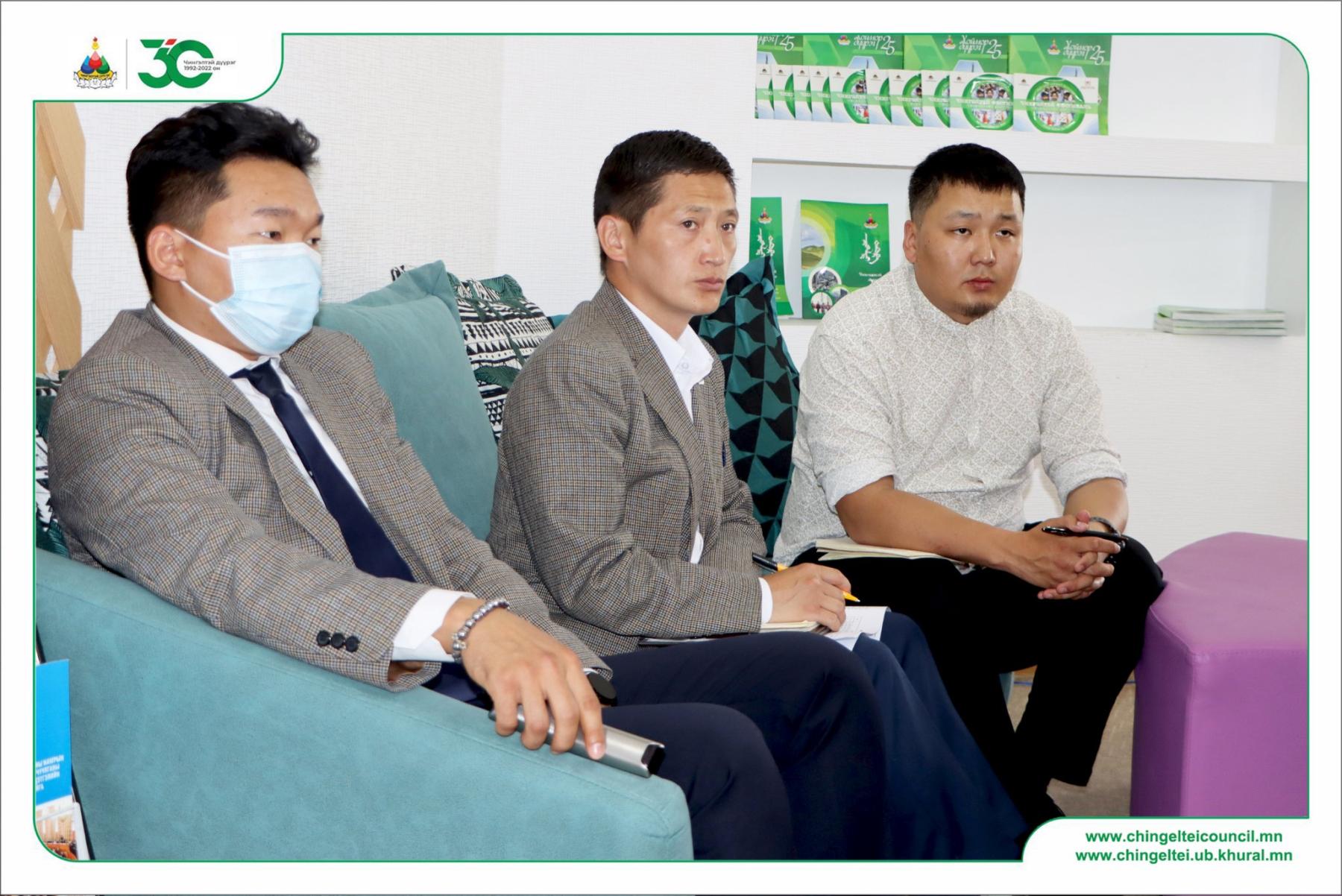 Чингэлтэй дүүргийн Засаг даргын тамгын газрын Тохижилт, нийтийн аж ахуйн хэлтсийн дарга Б.Саруул-Од, Тохижилт, байгаль орчин, ногоон байгууламж хариуцсан ахлах мэргэжилтэн Х.Энхбат, Дэд бүтцийн асуудал хариуцсан мэргэжилтэн Г.Ганболд, Агаар, орчны бохирдол хариуцсан мэргэжилтэн Б.Эрдэнэбаяр нар оролцож байна.