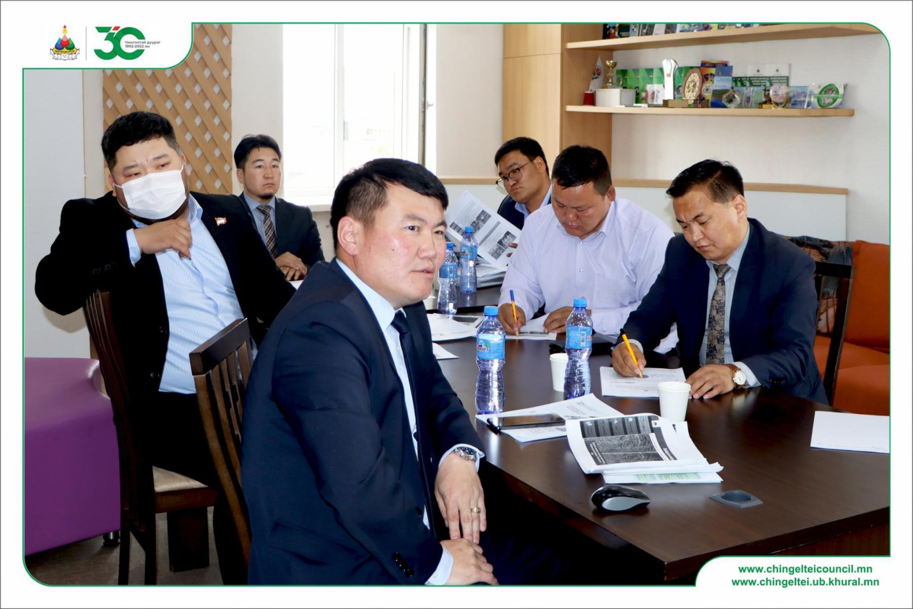 Яг одоо /2022.06.06/ Нийслэлийн Чингэлтэй дүүргийн иргэдийн Төлөөлөгчдийн Хурлын Ногоон хөгжил, газрын харилцааны хороо харьяалагдах асуудлын хүрээнд хуралдаж байна.