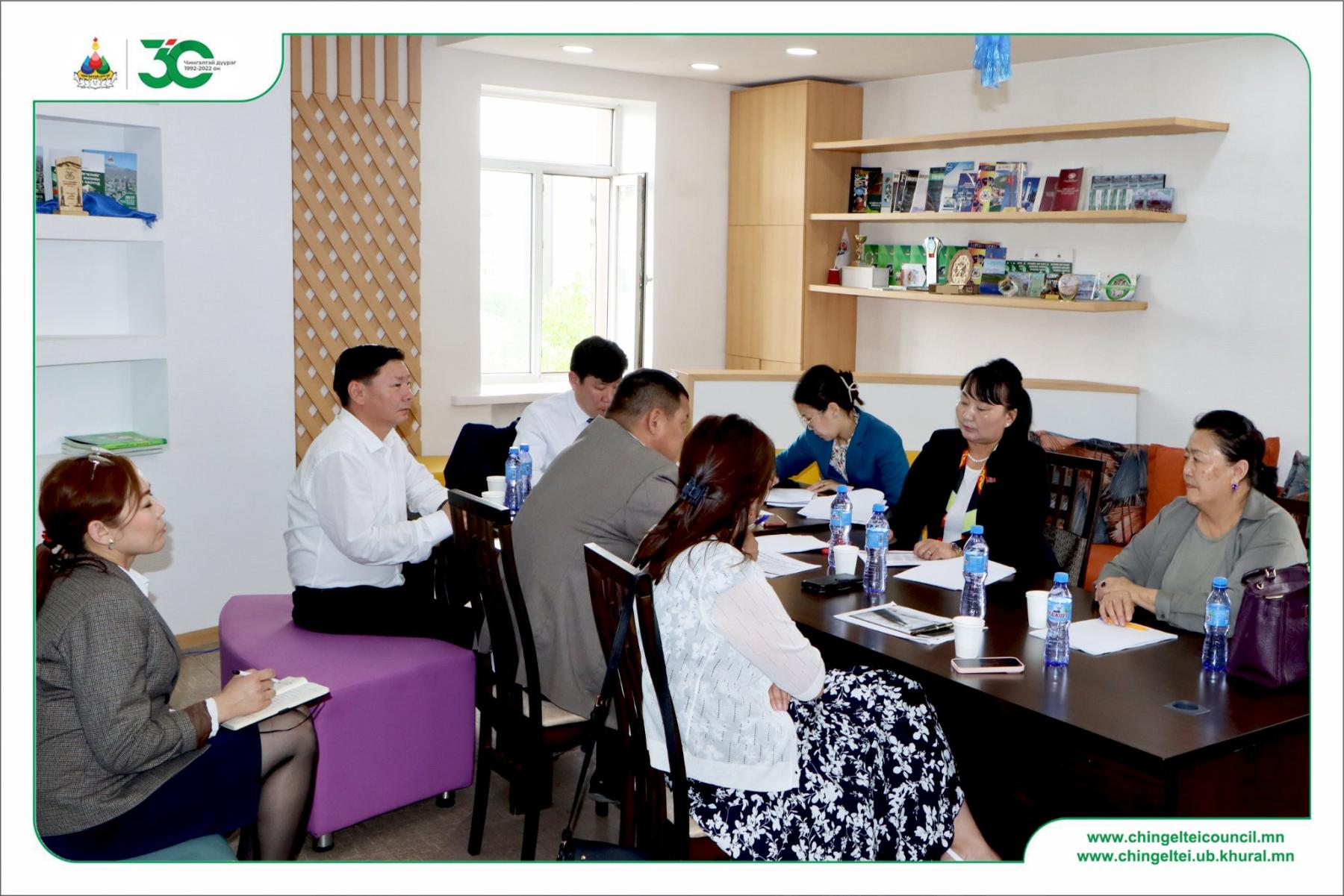 Яг одоо /2022.06.06/ Нийслэлийн Чингэлтэй дүүргийн иргэдийн Төлөөлөгчдийн Хурлын Ёс зүй, өргөдлийн хороо харьяалагдах асуудлын хүрээнд хуралдаж байна.